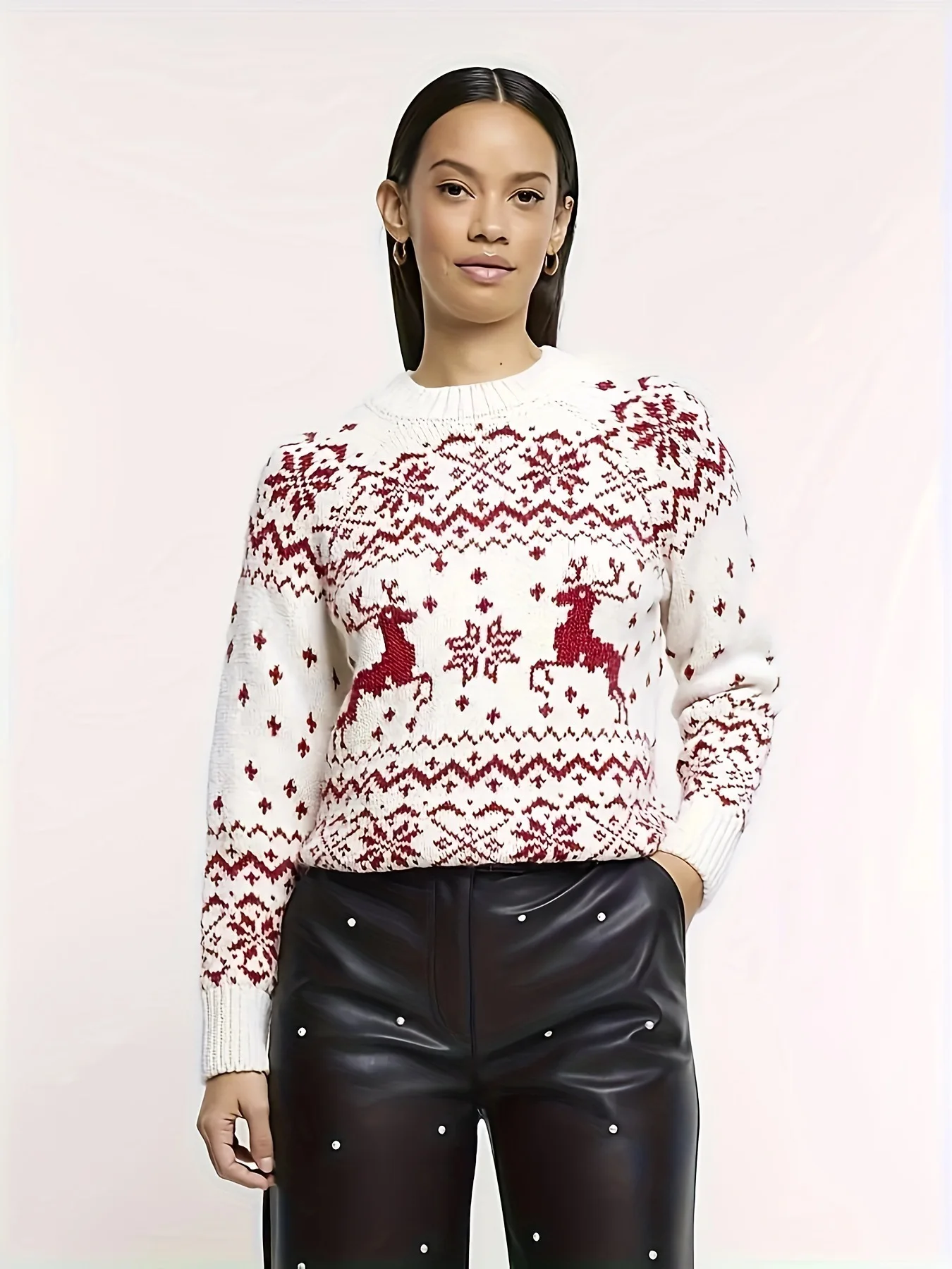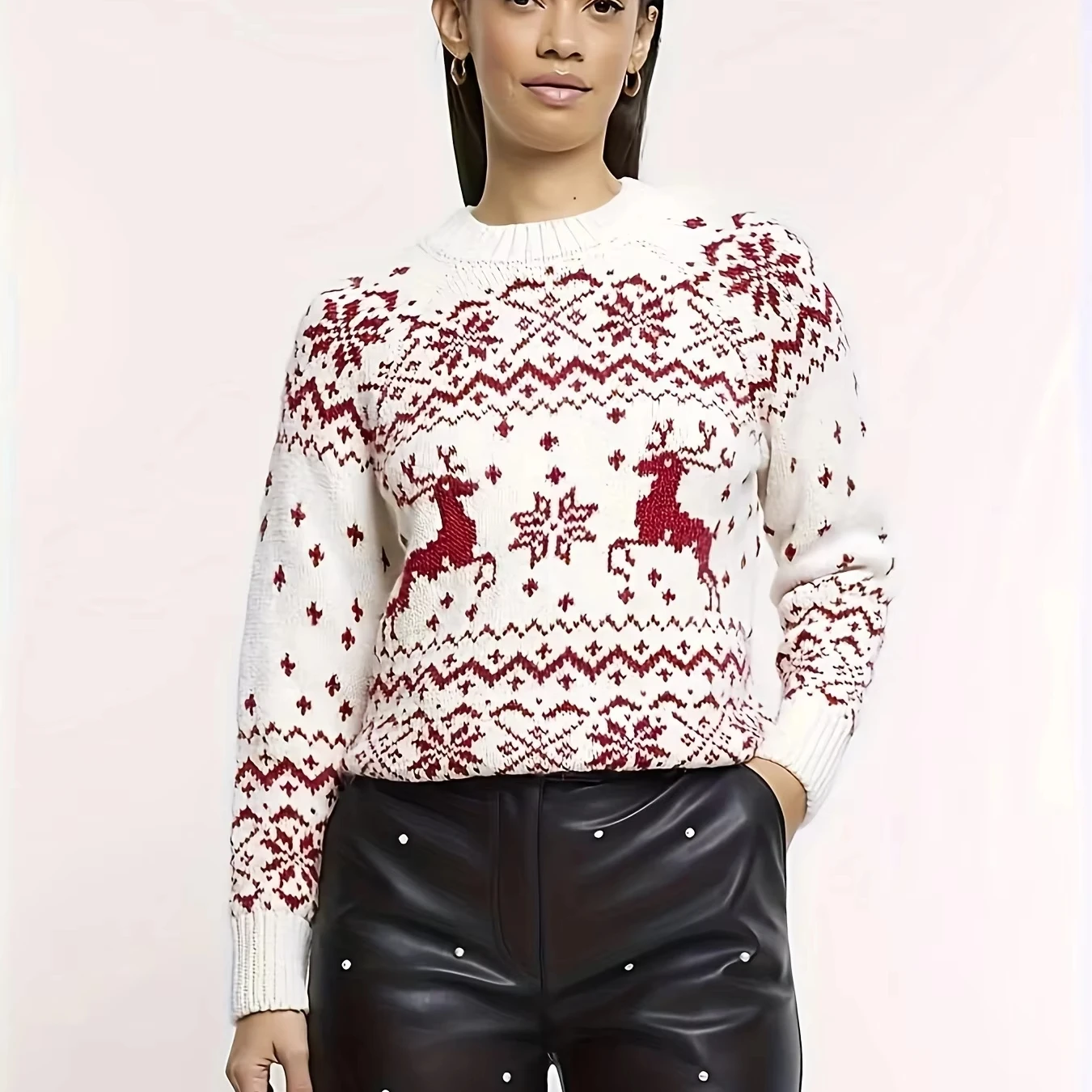 Women's Woven Casual Polyester Sweater Autumn Anti-shrink Treatment for European American Style Versatile Christmas Themed Long